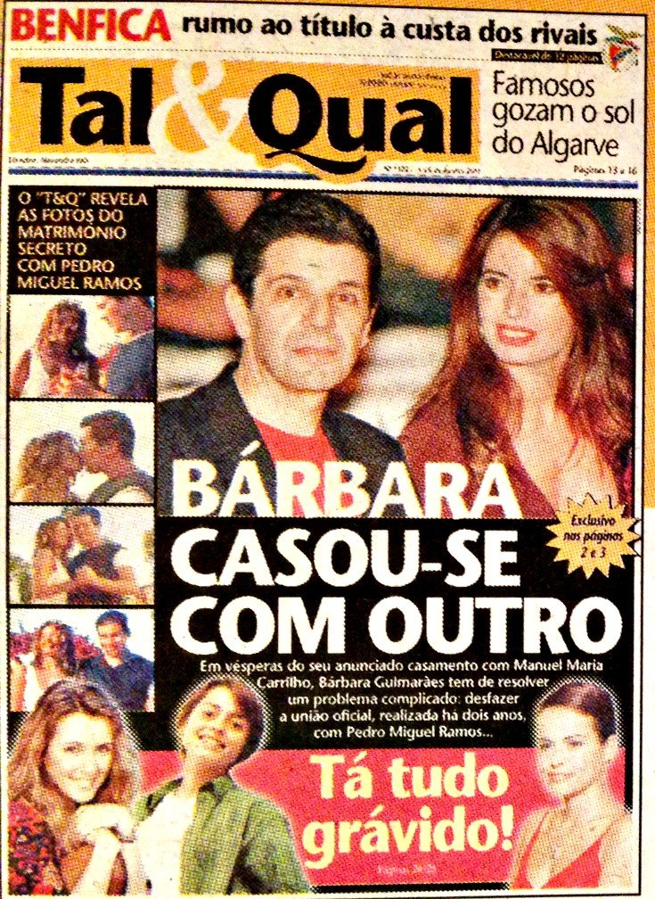A capa da antepenúltima edição da SÁBADO fez-me recuar 16 anos, ao agosto de 2001 em que o Tal&Qual, semanário que então dirigia, se preparava para revelar que o anunciado casamento de Bárbara Guimarães com Manuel Maria Carrilho não poderia realizar-se porque a apresentadora da SIC havia contraído matrimónio na República Dominicana, em 1999, com Pedro Miguel Ramos.
